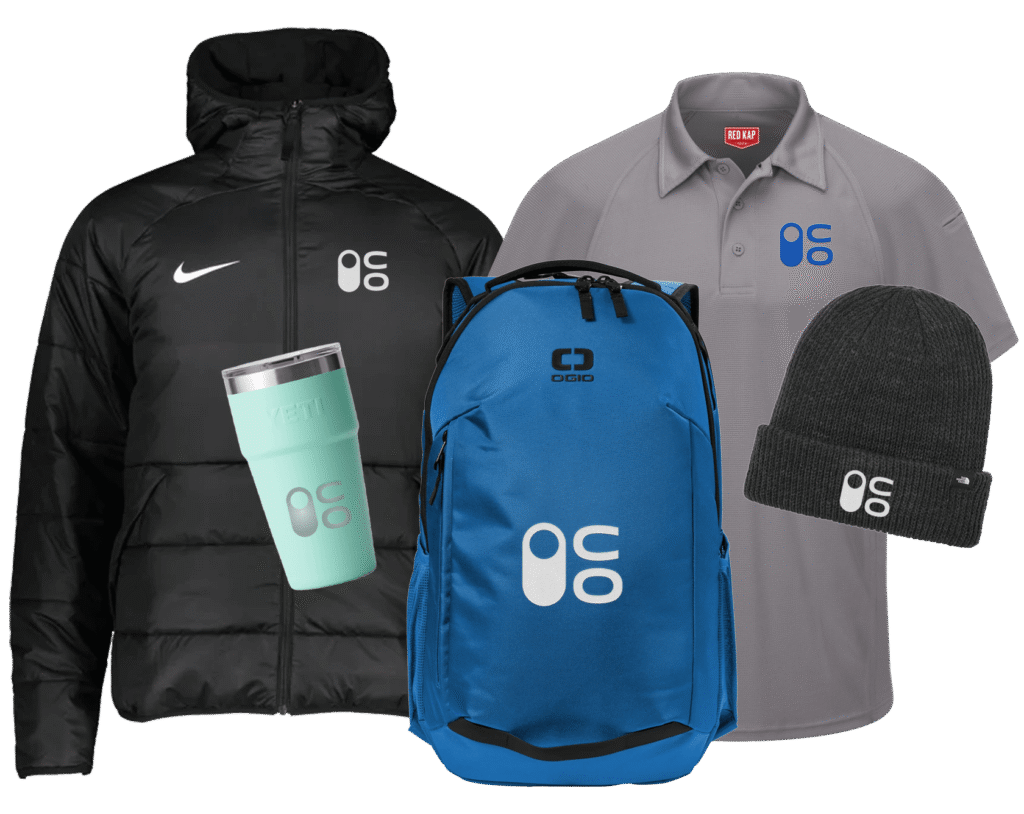 Promote company pride with branded apparel, drinkware, and gear for employee programs, job fairs, or community events without bulk orders or leftover swag.